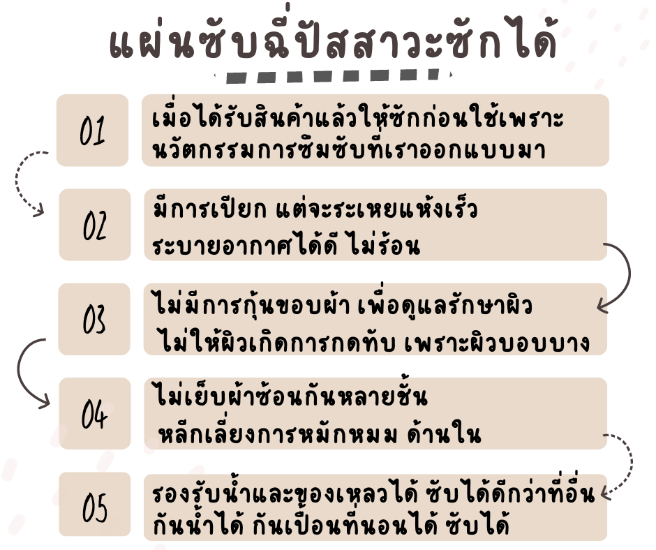 • ปลอดภัยต่อผิว ไม่อับชื้น ไม่เสี่ยงแผลกดทับ